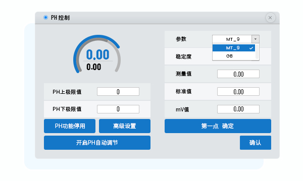 ① 进行校准前,根据缓冲液类型进行参数选择:[GB]指使用的是符合GB/T27501-2011标准的缓冲液,一般使用的几种缓冲液pH值为4.00、6.86和9.18,其相对应的“稳定度”即“缓冲液的不确定度”通常选择±0.02pH。lewin乐玩通常使用的是METTLER TOLEDO InPro3030系列pH电极,参数[MT_9]即对应其品牌的缓冲液,一般使用的缓冲液pH值为4.01、7.00和9.21,其“稳定度”需根据所使用的缓冲液型号进行选择。