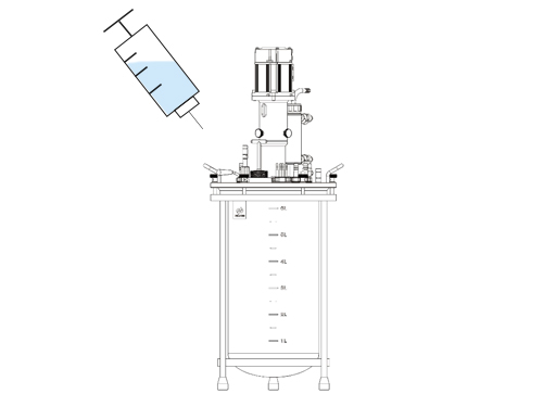 步骤3 准备好无菌的注射器(提前在超净台吸入菌种液体),无菌操作将种子液安全注入发酵罐内。
